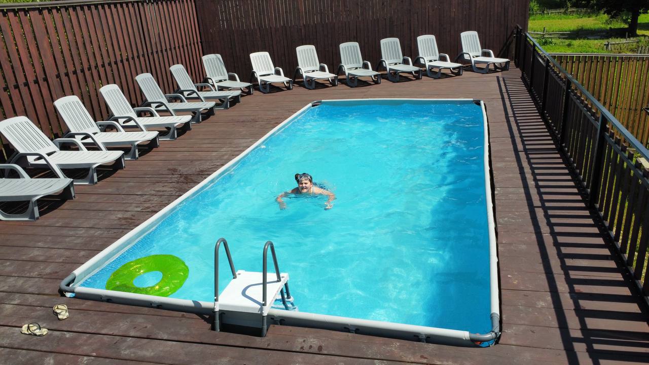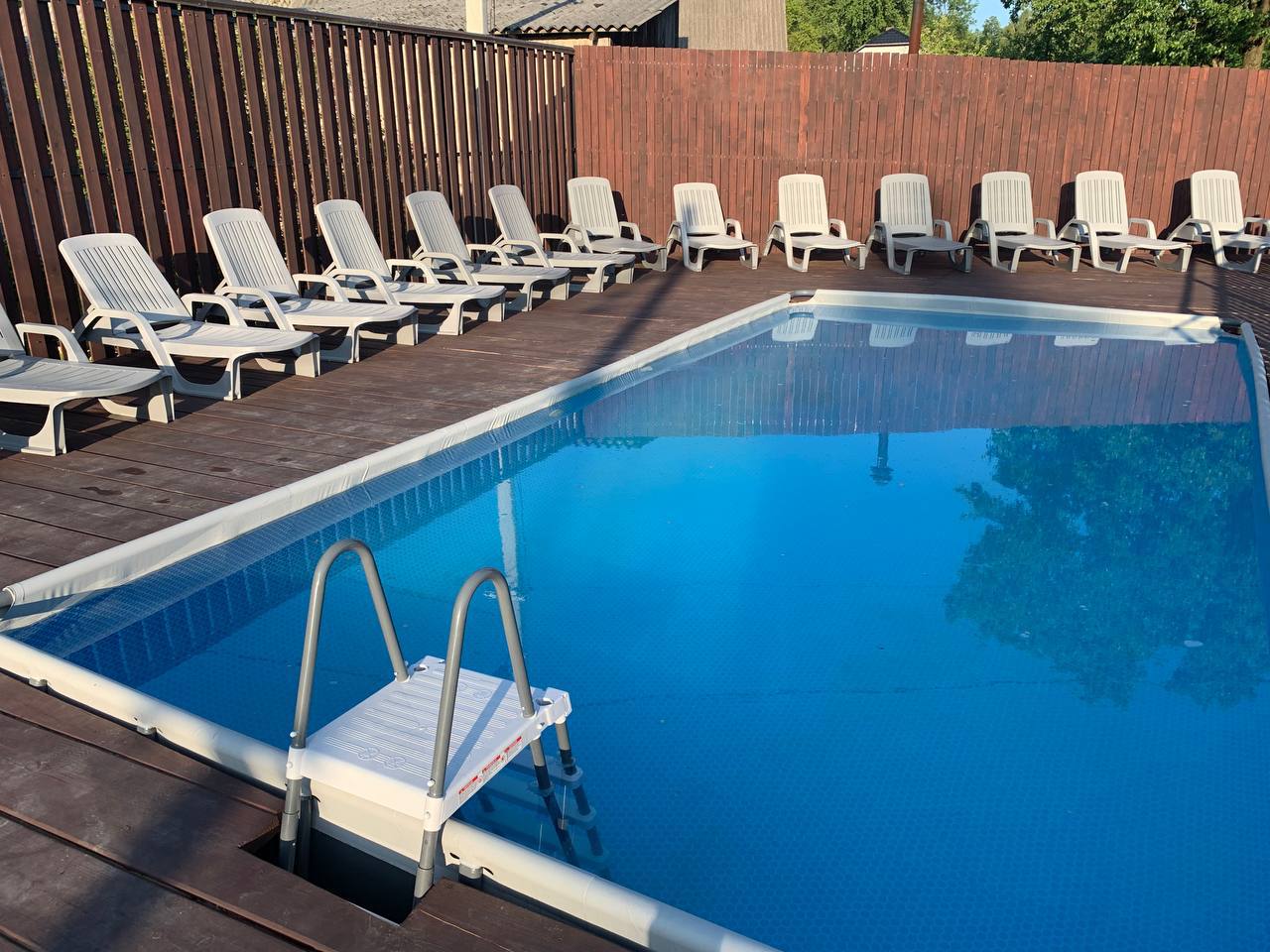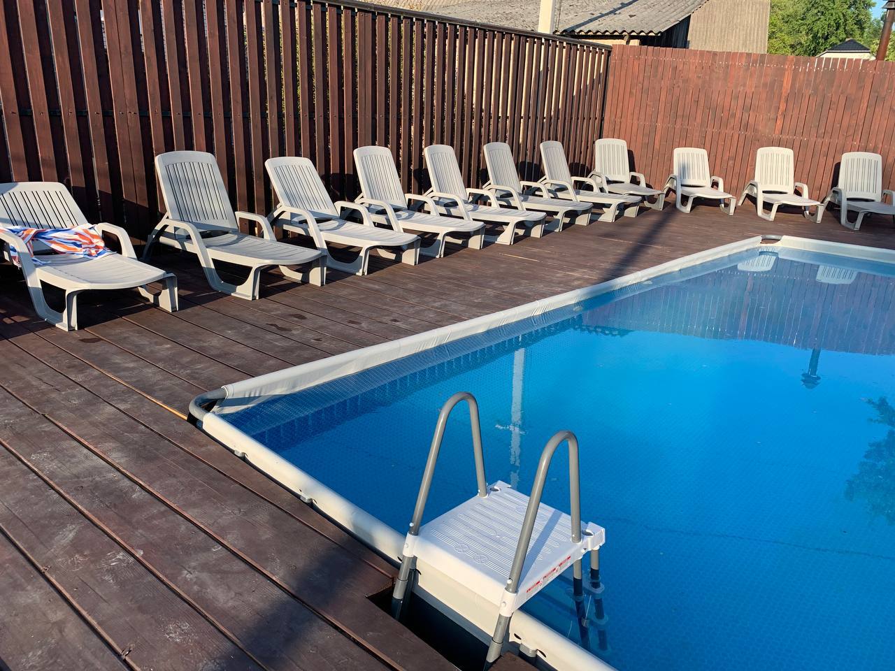 Пройшовши по мості через річку , ви потрапите на тереторію де знаходиться еко-басейн та альтанки, де можна відпочити із друзями.